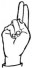 На ћирилици написано ВИКТОРИЈА ЏАКУЛА састоји се из 15 слова [?]. Исписано ћириличном једноручном азбуком за глувонеме: